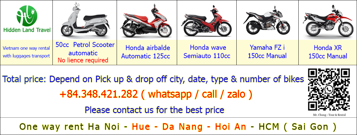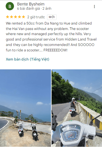 When you book a Rent 50cc scooter in Hue return Da Nang one-way service, you’ll get everything you need for a smooth and safe journey: