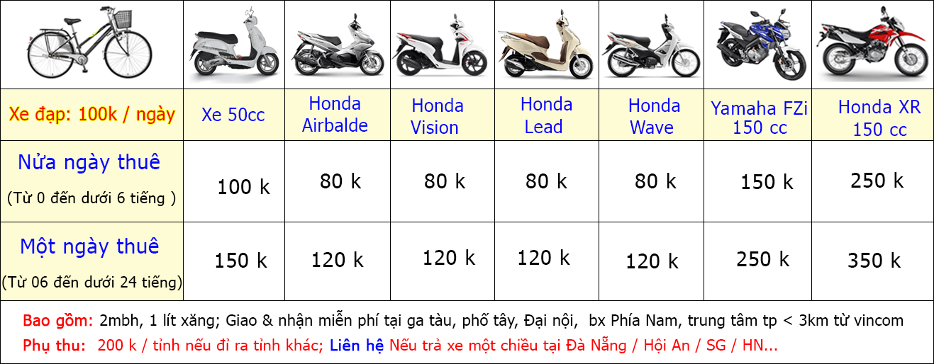 Khi sử dụng dịch vụ cho thuê xe 50cc tại Huế, bạn sẽ nhận được:
